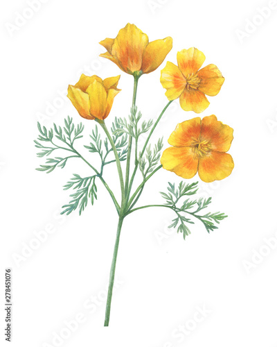 Watercolor Floral Botanical Illustration Eschscholzia Californica Stock Illustration 769032583