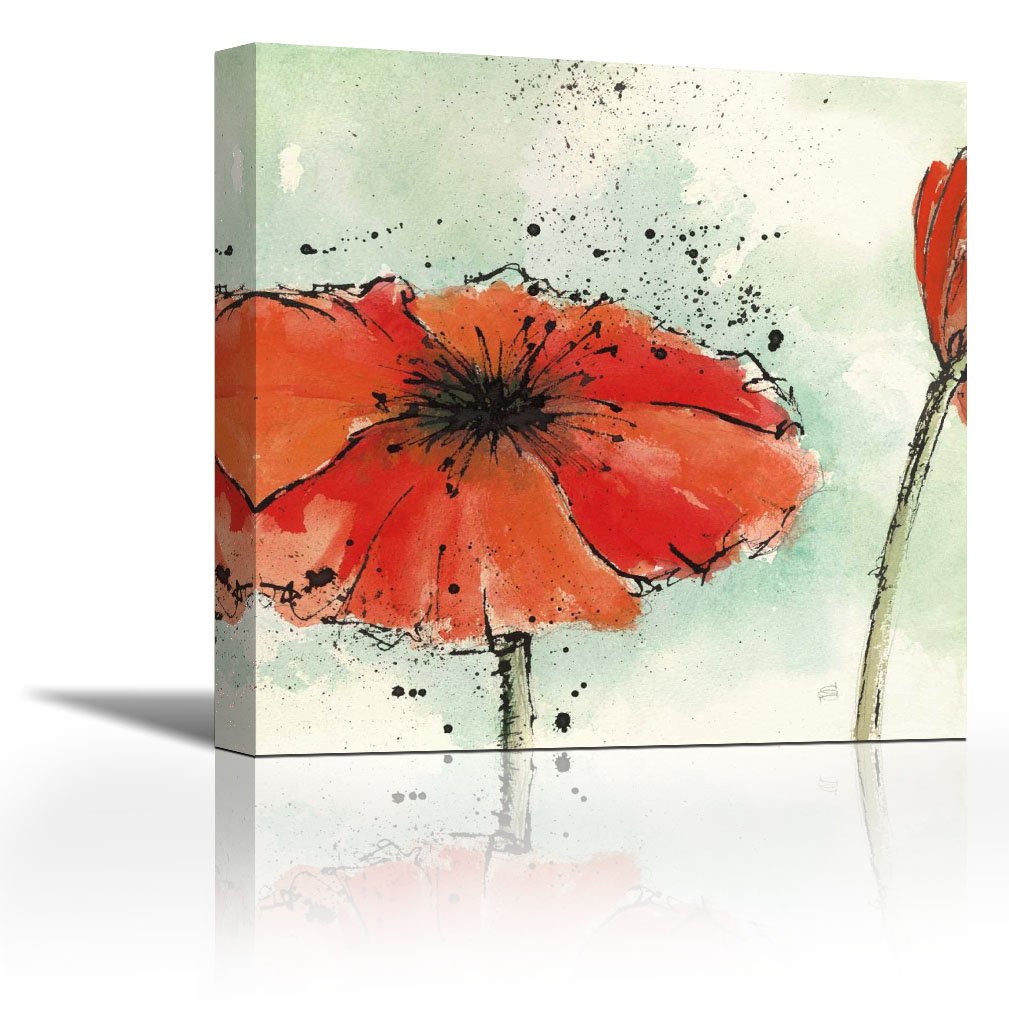 Orange Poppy Flower Watercolor Paint Wet Ink Leaf Plant Stem Pedicel Free Png Pngfuel
