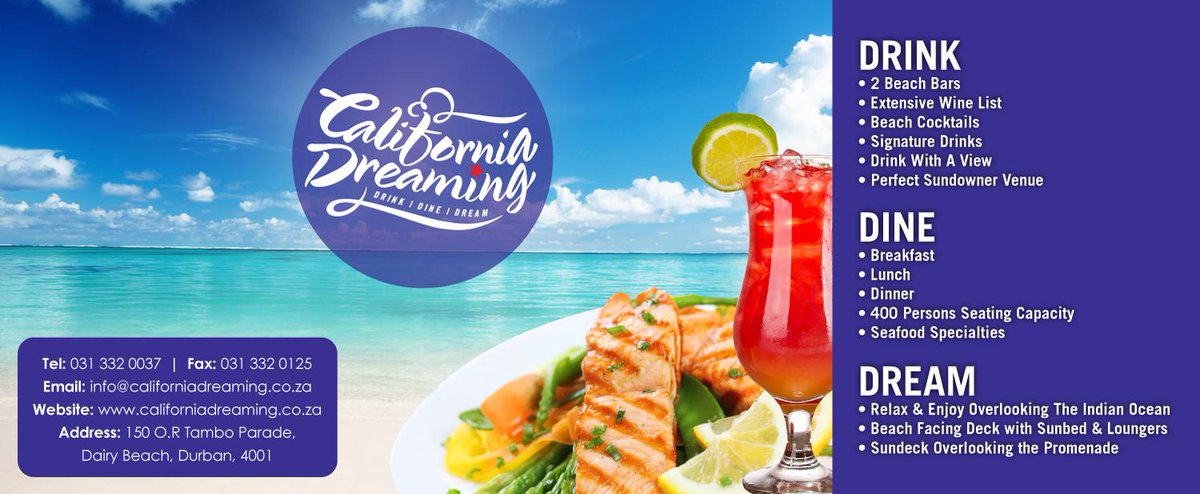 California Dreaming Durban Beachfront Restaurant Posts Durban Kwazulu Natal Menu Prices Restaurant Reviews Facebook