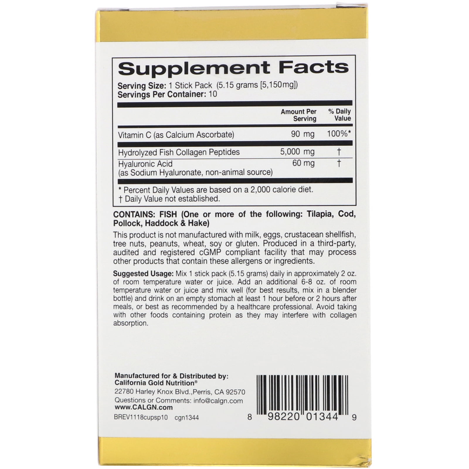 California Gold Nutrition Collagen Hydrolyzed Peptides Vitamin C