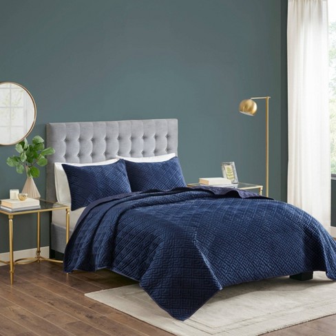 Diamond Cameo Blue King California King Coverlet Jennifer Adams