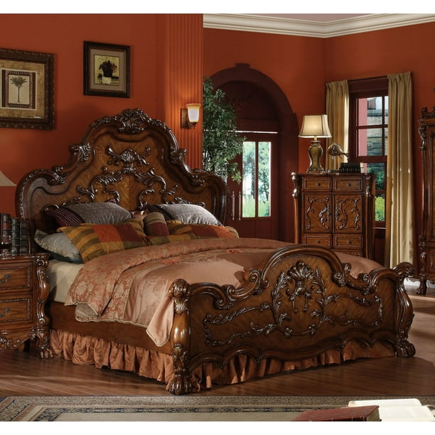 Traditional Antique Carved Wood Queen Eastern California King Bed