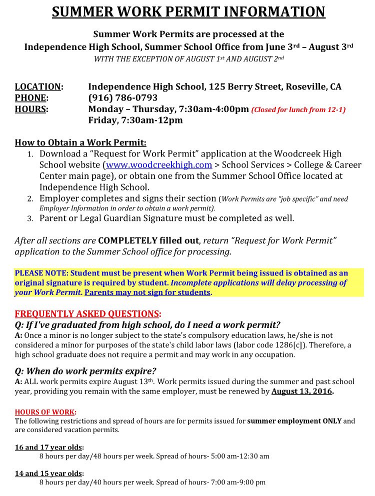 Job Permit For 16 Year Old
