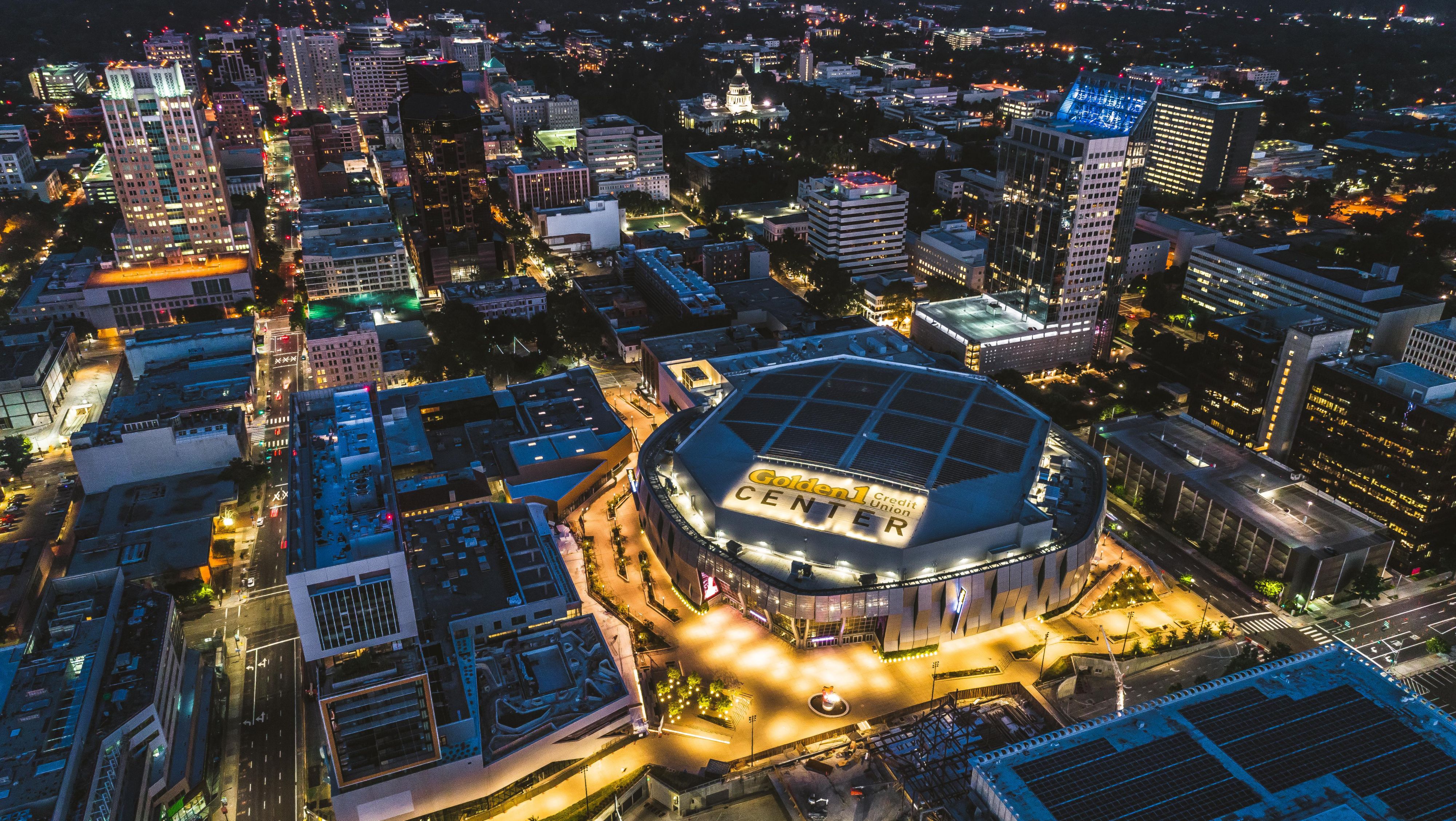 Night View Of The Historical Downtown Sacramento With Tower Bridge