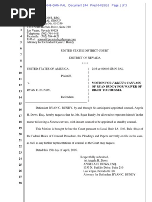 04 15 2016 Ecf 244 Usa V Ryan Bundy Motion For Faretta Canvass www.scribd.com