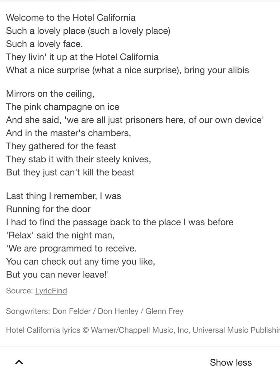 Aly Khan Satchu On Twitter Eagles Hotel California Lyrics twitter.com