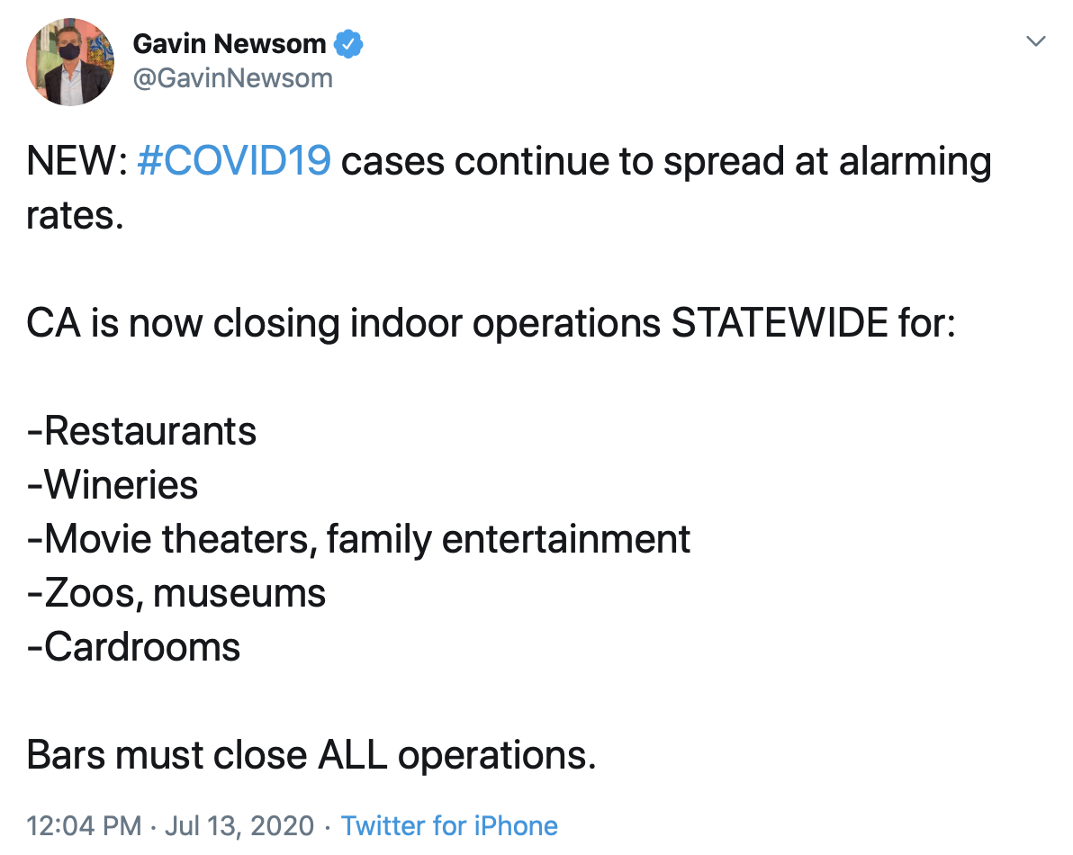 California Starts To Close Down Businesses Once Again Am 920 The