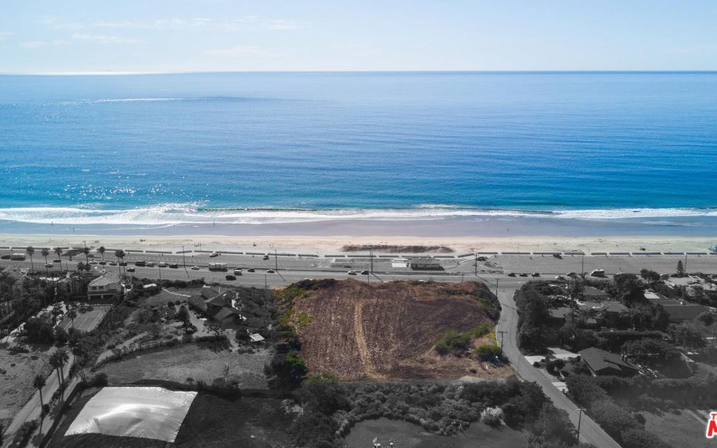 Perfect Aerial Wide Shot Of A Malibu California Beach With White