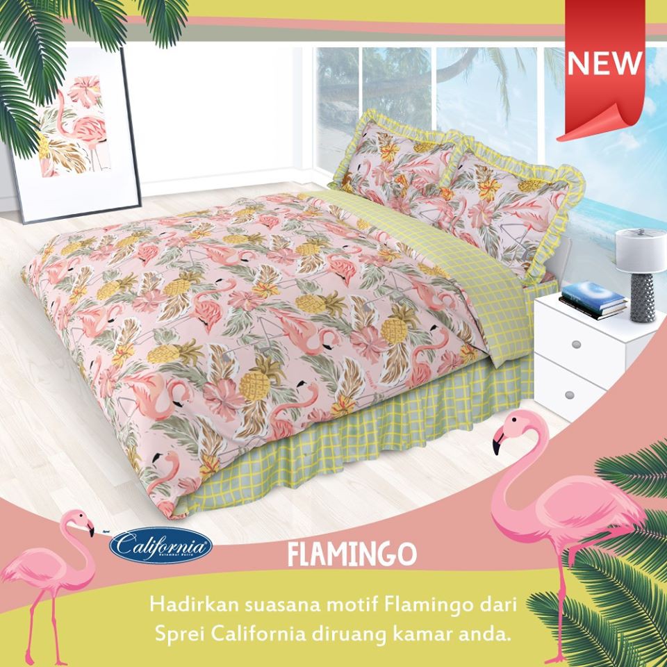 Jual Sprei California Motif Flamingo Uk 160 180x200 Queen King www.tokopedia.com