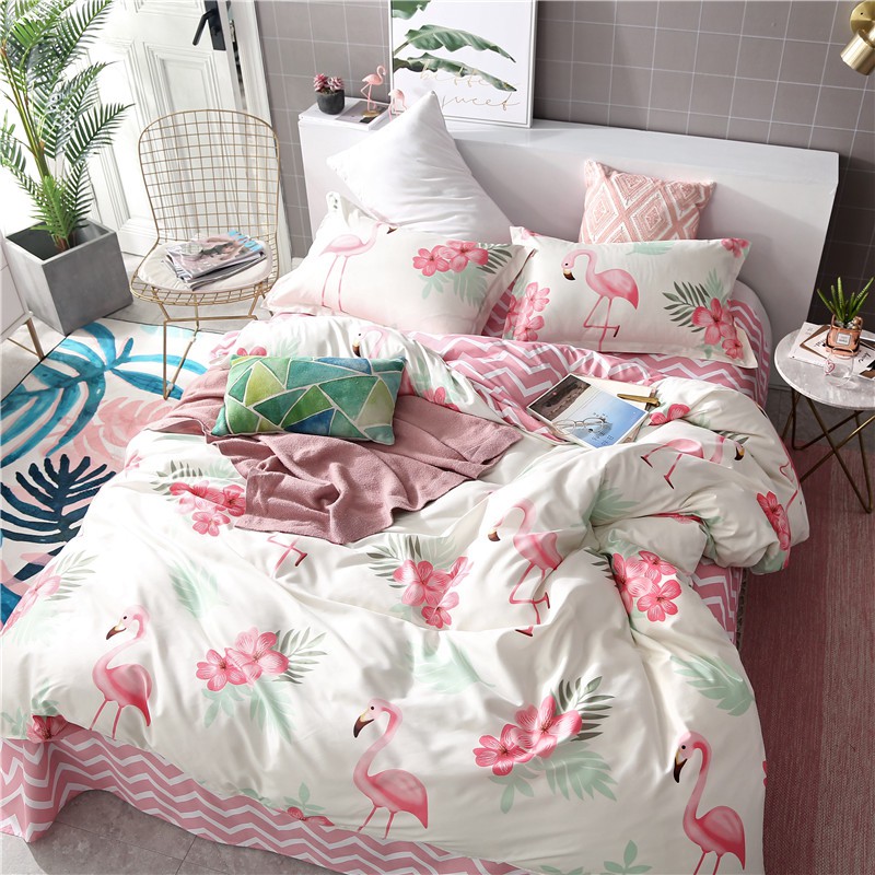 Dansunreve Bedding Set Twin Queen King Size Flamingo Quilt Cover shopee.sg